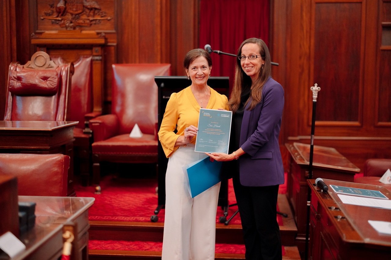 Sue’s connection to UC didn’t stop there. She was a successful applicant for the 2024 Pathways to Politics for Women, a national program delivered by a network of universities.